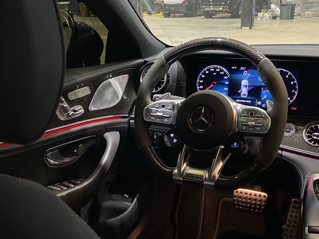 Blue WE DELIVER TO YOUR HOME OR OFFICE. BLUETOOTH:Bluetooth is a registered mark of Bluetooth SIG, Inc, 14 Speakers, 4-Wheel Disc Brakes, ABS brakes, Adaptive suspension, Air Conditioning, Alloy wheels, AM/FM radio: SiriusXM, Apple CarPlay®/Android Auto®, Auto High-beam Headlights, Auto tilt-away steering wheel, Auto-dimming door mirrors, Auto-dimming Rear-View mirror, Auto-leveling suspension, Automatic temperature control, Brake assist, Bumpers: body-color, Burmester® Surround Sound System, Child-Seat-Sensing Airbag, Compass, Delay-off headlights, Driver door bin, Driver vanity mirror, Dual front impact airbags, Dual front side impact airbags, Electronic Stability Control, Emergency communication system: Mercedes me connect, Exterior Parking Camera Rear, Four wheel independent suspension, Front anti-roll bar, Front Bucket Seats, Front Center Armrest, Front dual zone A/C, Front reading lights, Fully automatic headlights, Garage door transmitter, Head restraints memory, Heated & Ventilated Power Front Bucket Seats, Heated door mirrors, Heated front seats, Illuminated entry, Knee airbag, Leather Shift Knob, Low tire pressure warning, Memory seat, Nappa Leather Upholstery, Navigation System, Occupant sensing airbag, Outside temperature display, Overhead airbag, Overhead console, Panic alarm, Passenger door bin, Passenger vanity mirror, Power adjustable front head restraints, Power door mirrors, Power driver seat, Power Liftgate, Power moonroof, Power passenger seat, Power steering, Power windows, Premium audio system: MBUX, Radio data system, Radio: MBUX Infotainment and Navigation System, Rain sensing wipers, Rear anti-roll bar, Rear reading lights, Rear Window Blind, Rear window defroster, Remote keyless entry, Security system, Speed control, Speed-sensing steering, Speed-Sensitive Wipers, Spoiler, Sport steering wheel, Steering wheel memory, Steering wheel mounted audio controls, Tachometer, Telescoping steering wheel, Tilt steering wheel, Traction control, Trip computer, Turn signal indicator mirrors, Variably intermittent wipers, Ventilated front seats, and Wheels: 19" AMG® Multispoke.