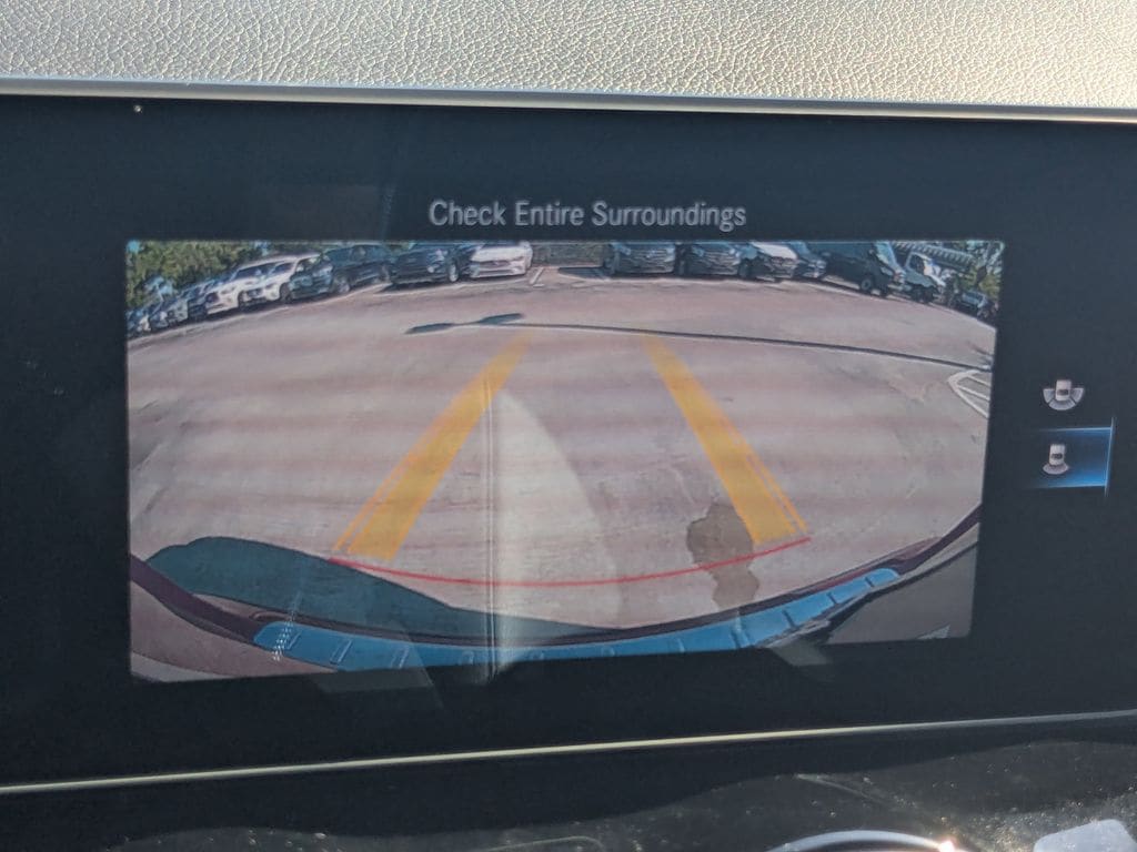 Red WE DELIVER TO YOUR HOME OR OFFICE. BLUETOOTH:Bluetooth is a registered mark of Bluetooth SIG, Inc, 4-Wheel Disc Brakes, 6 Speakers, ABS brakes, Air Conditioning, Alloy wheels, AM/FM radio, Apple CarPlay®/Android Auto®, Automatic temperature control, Axle Ratio: TBD, Brake assist, Bumpers: body-color, Child-Seat-Sensing Airbag, Delay-off headlights, Driver door bin, Driver vanity mirror, Dual front impact airbags, Dual front side impact airbags, Electronic Stability Control, Emergency communication system: eCall Emergency System and Active Emergency Stop Assist, Exterior Parking Camera Rear, Four wheel independent suspension, Front anti-roll bar, Front Bucket Seats, Front Center Armrest, Front dual zone A/C, Front fog lights, Front Power Seats, Front reading lights, Fully automatic headlights, Heated door mirrors, Illuminated entry, Knee airbag, Low tire pressure warning, MB-Tex Upholstery, Memory seat, Occupant sensing airbag, Outside temperature display, Overhead airbag, Overhead console, Panic alarm, Passenger door bin, Passenger vanity mirror, Power door mirrors, Power driver seat, Power Liftgate, Power passenger seat, Power steering, Power windows, Radio data system, Radio: MBUX Multimedia System, Rain sensing wipers, Rear anti-roll bar, Rear fog lights, Rear reading lights, Rear window defroster, Rear window wiper, Remote keyless entry, Roof rack: rails only, Security system, Speed control, Speed-sensing steering, Split folding rear seat, Spoiler, Steering wheel mounted audio controls, Tachometer, Telescoping steering wheel, Tilt steering wheel, Traction control, Trip computer, Turn signal indicator mirrors, Variably intermittent wipers, and Wheels: 18" Twin 5-Spoke. 24/33 City/Highway MPG