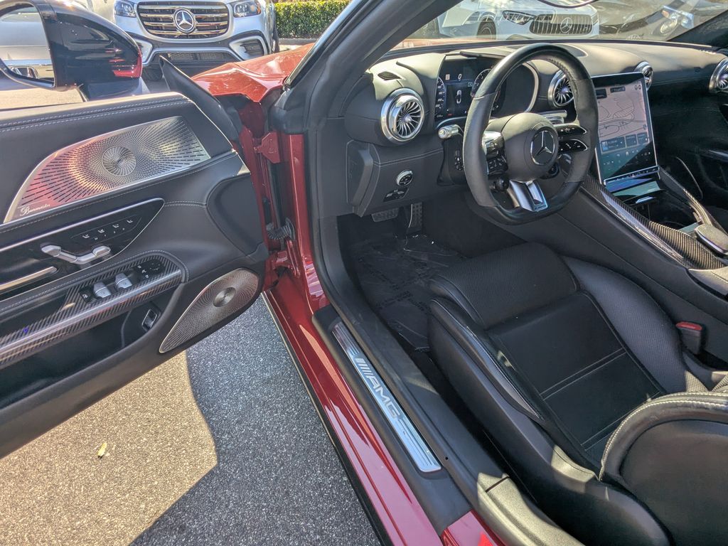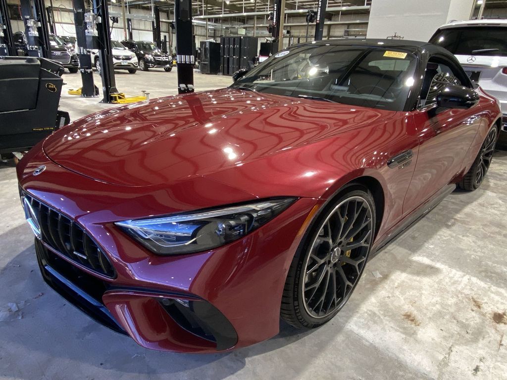Red WE DELIVER TO YOUR HOME OR OFFICE. Leather. BLUETOOTH:Bluetooth is a registered mark of Bluetooth SIG, Inc, Leather, 11 Speakers, 20" AMG® Twin 5-Spoke Wheels, 4-Wheel Disc Brakes, ABS brakes, Active Multicontour Front Seats w/Massage Feature, Adaptive suspension, Air Conditioning, Alloy wheels, AM/FM radio: SiriusXM, Android Auto®, Apple CarPlay®, Apple CarPlay®/Android Auto®, Auto High-beam Headlights, Auto tilt-away steering wheel, Auto-dimming door mirrors, Auto-dimming Rear-View mirror, Automatic temperature control, Bluetooth® Connectivity, Brake assist, Bumpers: body-color, Burmester® Surround Sound System, Child-Seat-Sensing Airbag, Convertible roof lining, Convertible roof wind blocker, Delay-off headlights, Driver door bin, Driver vanity mirror, Dual front impact airbags, Dual front side impact airbags, Electronic Stability Control, Emergency communication system: Mercedes me connect, Exterior Parking Camera Rear, Four wheel independent suspension, Front anti-roll bar, Front Bucket Seats, Front Center Armrest, Front dual zone A/C, Front reading lights, Garage door transmitter: HomeLink, Glass rear window, Heads-Up Display, Heated front seats, Heated steering wheel, Illuminated entry, Integrated roll-over protection, Knee airbag, Leather steering wheel, Low tire pressure warning, Memory seat, Nappa Leather Upholstery, Navigation System, Occupant sensing airbag, Outside temperature display, Overhead airbag, Overhead console, Panic alarm, Passenger door bin, Passenger vanity mirror, Power convertible roof, Power door mirrors, Power driver seat, Power passenger seat, Power steering, Power windows, Radio data system, Radio: MBUX Infotainment & Navigation System, Rain sensing wipers, Rear anti-roll bar, Rear fog lights, Rear window defroster, Remote keyless entry, Security system, SiriusXM Radio, Smartphone Integration, Speed control, Speed-sensing steering, Spoiler, Sport steering wheel, Steering wheel memory, Steering wheel mounted audio controls, Tachometer, Telescoping steering wheel, Tilt steering wheel, Touring Trim Line, Traction control, Trip computer, Turn signal indicator mirrors, Variably intermittent wipers, and Ventilated front seats.
