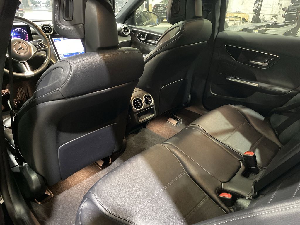 Black WE DELIVER TO YOUR HOME OR OFFICE. BLUETOOTH:Bluetooth is a registered mark of Bluetooth SIG, Inc, Premium Trim Package, 11.9" Center Touchscreen Display, 18" 5-Spoke Wheels, 4-way Power Driver's Lumbar Support, 4-Wheel Disc Brakes, 5 Speakers, ABS brakes, Air Conditioning, Alloy wheels, AM/FM radio, Anti-whiplash front head restraints, Apple CarPlay®/Android Auto®, Auto High-beam Headlights, Auto tilt-away steering wheel, Auto-dimming door mirrors, Auto-dimming Rear-View mirror, Automatic temperature control, Brake assist, Bumpers: body-color, Child-Seat-Sensing Airbag, Compass, Delay-off headlights, Driver door bin, Driver vanity mirror, Dual front impact airbags, Dual front side impact airbags, Electronic Stability Control, Emergency communication system: Mercedes-Benz Emergency Call Service, Exterior Parking Camera Rear, Four wheel independent suspension, Front anti-roll bar, Front Bucket Seats, Front Center Armrest, Front dual zone A/C, Front reading lights, Fully automatic headlights, Garage door transmitter: HomeLink, Genuine wood dashboard insert, Head restraints memory, Heated door mirrors, Heated front seats, Illuminated entry, Knee airbag, Low tire pressure warning, MB-Tex Upholstery, Memory seat, Occupant sensing airbag, Outside temperature display, Overhead airbag, Overhead console, Panic alarm, Passenger door bin, Passenger vanity mirror, Power adjustable front head restraints, Power door mirrors, Power driver seat, Power Heated Front Seats w/Memory, Power moonroof, Power passenger seat, Power steering, Power windows, Premium audio system: MBUX, Radio data system, Radio: FrontBass 5-Speaker Audio System, Rain sensing wipers, Rear anti-roll bar, Rear fog lights, Rear reading lights, Rear seat center armrest, Rear window defroster, Remote keyless entry, Security system, Speed control, Speed-sensing steering, Split folding rear seat, Steering wheel memory, Steering wheel mounted audio controls, Tachometer, Telescoping steering wheel, Tilt steering wheel, Traction control, Trip computer, Turn signal indicator mirrors, Variably intermittent wipers, and Weather band radio. 25/36 City/Highway MPG
