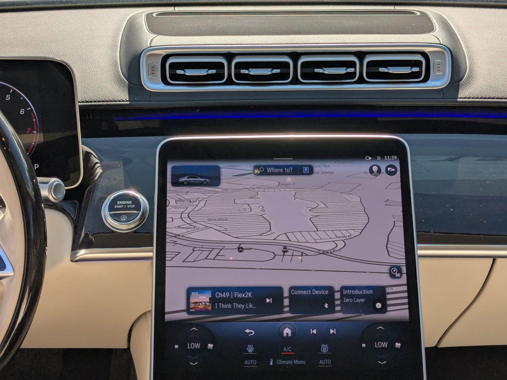 Black WE DELIVER TO YOUR HOME OR OFFICE. 4.0L V8, 4MATIC®, Macchiato/Magma Gray w/Nappa Leather Upholstery. BLUETOOTH:Bluetooth is a registered mark of Bluetooth SIG, Inc, Front Energizing Package, Warmth & Comfort Package (Heated Front Armrests, Heated Rear Armrests, Heated Steering Wheel, Power Rear Seats, Rear Memory Seats, Rear Seat Heating, and Ventilated Rear Seats), 4.0L V8, 4MATIC®, Macchiato/Magma Gray w/Nappa Leather Upholstery, 10 Degree Rear Axle Steering, 15 Speakers, 4-Wheel Disc Brakes, ABS brakes, Adaptive suspension, Air Conditioning, AM/FM radio: SiriusXM, Apple CarPlay®/Android Auto®, Auto High-beam Headlights, Auto tilt-away steering wheel, Auto-dimming door mirrors, Auto-dimming Rear-View mirror, Auto-leveling suspension, Automatic temperature control, Brake assist, Bumpers: body-color, Burmester® 3D Surround Sound System, Child-Seat-Sensing Airbag, Compass, Delay-off headlights, Door auto-latch, Driver door bin, Driver vanity mirror, Dual front impact airbags, Dual front side impact airbags, Electronic Stability Control, Emergency communication system: eCall Emergency System, Executive Rear Seat, Exterior Parking Camera Rear, Four wheel independent suspension, Front anti-roll bar, Front Center Armrest, Front dual zone A/C, Front reading lights, Garage door transmitter: HomeLink, Genuine wood dashboard insert, Genuine wood door panel insert, Head restraints memory, Heated door mirrors, Heated front seats, Heated steering wheel, HVAC memory, Illuminated entry, Knee airbag, Leather steering wheel, Low tire pressure warning, Memory seat, Nappa Leather Upholstery, Navigation System, Occupant sensing airbag, Outside temperature display, Overhead airbag, Overhead console, Panic alarm, Passenger door bin, Passenger vanity mirror, Power adjustable front head restraints, Power adjustable rear head restraints, Power door mirrors, Power driver seat, Power moonroof: Panorama, Power passenger seat, Power steering, Power windows, Powered Rapid-Heated & Ventilated Front Seats, Premium audio system: MBUX, Radio data system, Radio: MBUX w/Navigation, Rain sensing wipers, Rear anti-roll bar, Rear fog lights, Rear reading lights, Rear seat center armrest, Rear side impact airbag, Rear Window Blind, Rear window defroster, Remote keyless entry, Security system, Speed control, Speed-sensing steering, Speed-Sensitive Wipers, Steering wheel memory, Steering wheel mounted audio controls, Tachometer, Telescoping steering wheel, Tilt steering wheel, Traction control, Trip computer, Turn signal indicator mirrors, Variably intermittent wipers, Ventilated front seats, and Wheels: 19" Aero 10-Twin Multispoke. 18/27 City/Highway MPG