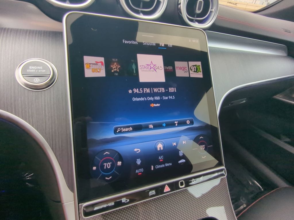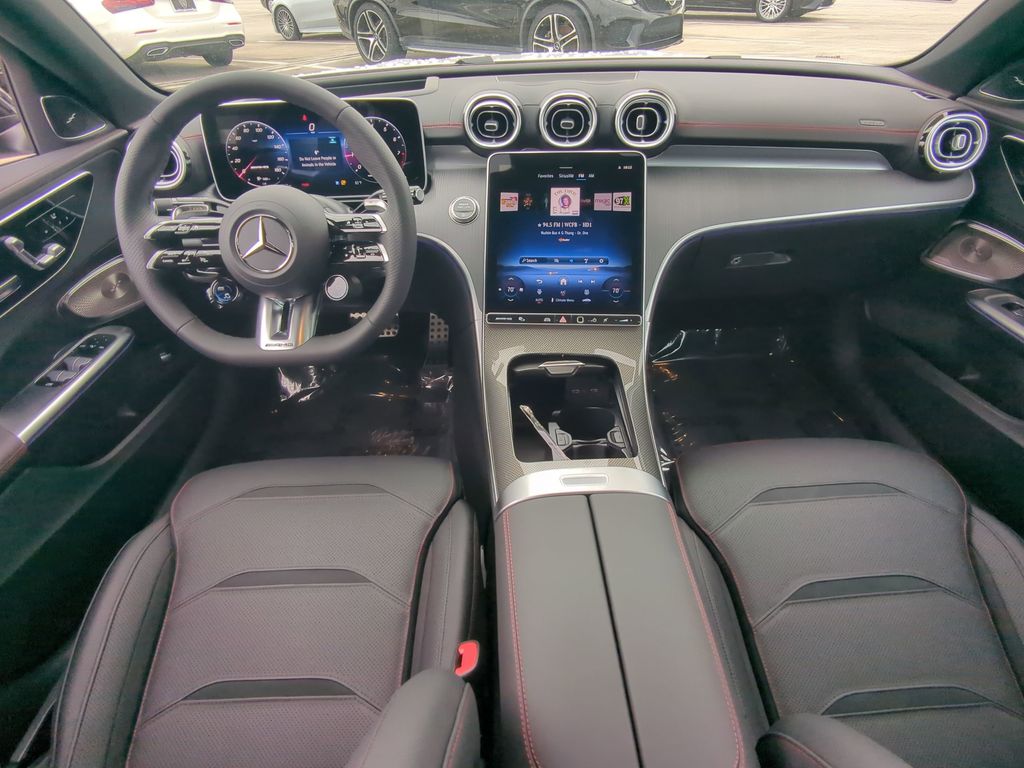 19/27 City/Highway MPG Recent Arrival! 2025 Mercedes-Benz C-Class C 43 AMG® MANUFAKTUR Moonlight White Metallic 4MATIC® Vehicle pricing not affected by Tariff. 4MATIC®. BLUETOOTH:Bluetooth is a registered mark of Bluetooth SIG, Inc, AMG® Night Package, AMG® Night Package Components, Individualization Package, Pinnacle Trim Package (Augmented Video for Navigation, Burmester® 3D Surround Sound System, DIGITAL LIGHT w/Projections, Enhanced Ambient Lighting, Head-Up Display w/AMG® Specific Content, and MB Navigation), 4MATIC®, 11.9" Center Touchscreen Display, 4-Wheel Disc Brakes, 5 Speakers, ABS brakes, Adaptive suspension, Air Conditioning, Alloy wheels, AM/FM radio, Apple CarPlay®/Android Auto®, Auto High-beam Headlights, Auto tilt-away steering wheel, Auto-dimming door mirrors, Auto-dimming Rear-View mirror, Automatic temperature control, Brake assist, Bumpers: body-color, Compass, Delay-off headlights, Driver door bin, Driver vanity mirror, Dual front impact airbags, Dual front side impact airbags, Electronic Stability Control, Emergency communication system: Mercedes-Benz Emergency Call Service, Exterior Parking Camera Rear, Four wheel independent suspension, Front anti-roll bar, Front Bucket Seats, Front Center Armrest, Front dual zone A/C, Front reading lights, Fully automatic headlights, Garage door transmitter: HomeLink, Genuine wood dashboard insert, Head restraints memory, Heated door mirrors, Heated front seats, Illuminated entry, Knee airbag, Leather steering wheel, Low tire pressure warning, MB-Tex/Microfiber Upholstery, Memory seat, Metal Weave Center Console, Occupant sensing airbag, Outside temperature display, Overhead airbag, Overhead console, Panic alarm, Passenger door bin, Passenger vanity mirror, Power adjustable front head restraints, Power door mirrors, Power driver seat, Power Heated Front Seats w/Memory, Power moonroof, Power passenger seat, Power steering, Power windows, Premium audio system: MBUX, Radio data system, Radio: FrontBass 5-Speaker Audio System, Rain sensing wipers, Rear anti-roll bar, Rear fog lights, Rear reading lights, Rear seat center armrest, Rear window defroster, Remote keyless entry, Security system, Speed control, Speed-sensing steering, Split folding rear seat, Spoiler, Sport steering wheel, Steering wheel memory, Steering wheel mounted audio controls, Tachometer, Telescoping steering wheel, Tilt steering wheel, Traction control, Trip computer, Turn signal indicator mirrors, Variably intermittent wipers, Weather band radio, Wheel Locking Bolts, Wheels: 18" x 8.0J AMG® 10-Spoke, and Wheels: 20" x 8J Fr & 20" x 9.5J Rr AMG® Split 10-Spk.
