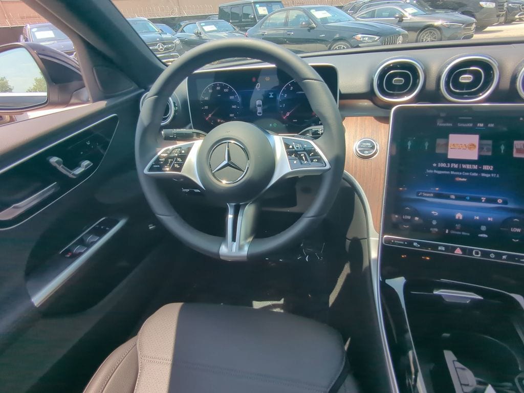 24/33 City/Highway MPG Recent Arrival! 2025 Mercedes-Benz C-Class C 300 Black 4MATIC® 4MATIC®. BLUETOOTH:Bluetooth is a registered mark of Bluetooth SIG, Inc, 4MATIC®, 11.9" Center Touchscreen Display, 18" 5-Spoke Wheels, 4-Wheel Disc Brakes, 5 Speakers, ABS brakes, Air Conditioning, Alloy wheels, AM/FM radio: SiriusXM, Anti-whiplash front head restraints, Apple CarPlay®/Android Auto®, Auto High-beam Headlights, Auto tilt-away steering wheel, Auto-dimming door mirrors, Auto-dimming Rear-View mirror, Automatic temperature control, Brake assist, Bumpers: body-color, Child-Seat-Sensing Airbag, Compass, Delay-off headlights, Driver door bin, Driver vanity mirror, Dual front impact airbags, Dual front side impact airbags, Electronic Stability Control, Emergency communication system: Mercedes-Benz Emergency Call Service, Exterior Parking Camera Rear, First Aid Kit, Four wheel independent suspension, Front anti-roll bar, Front Bucket Seats, Front Center Armrest, Front dual zone A/C, Front reading lights, Fully automatic headlights, Garage door transmitter: HomeLink, Genuine wood dashboard insert, Head restraints memory, Heated door mirrors, Heated front seats, Illuminated entry, Knee airbag, Leather steering wheel, Low tire pressure warning, Lumbar Support, MB-Tex Upholstery, Memory seat, Occupant sensing airbag, Outside temperature display, Overhead airbag, Overhead console, Panic alarm, Passenger door bin, Passenger vanity mirror, Piano Black Lacquer Center Console, Power adjustable front head restraints, Power door mirrors, Power driver seat, Power Heated Front Seats w/Memory, Power moonroof, Power passenger seat, Power steering, Power windows, Premium audio system: MBUX, Radio data system, Radio: FrontBass 5-Speaker Audio System, Rain sensing wipers, Rear anti-roll bar, Rear fog lights, Rear reading lights, Rear seat center armrest, Rear window defroster, Remote keyless entry, Security system, SiriusXM Satellite Radio, Speed control, Speed-sensing steering, Split folding rear seat, Steering wheel memory, Steering wheel mounted audio controls, Tachometer, Telescoping steering wheel, Tilt steering wheel, Traction control, Trip computer, Turn signal indicator mirrors, Variably intermittent wipers, and Weather band radio.