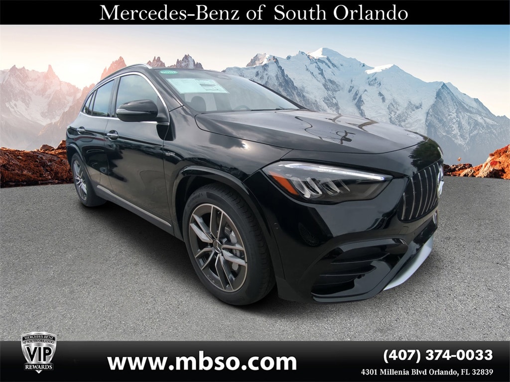 22/28 City/Highway MPG Recent Arrival! 2025 Mercedes-Benz GLA GLA 35 AMG Night Black 4MATIC® 2.0L I4 Turbocharged. BLUETOOTH:Bluetooth is a registered mark of Bluetooth SIG, Inc, 2.0L I4 Turbocharged, 19" AMG® Twin 5-Spoke Wheels, 4-Wheel Disc Brakes, 6 Speakers, ABS brakes, Adaptive suspension, Air Conditioning, Alloy wheels, AM/FM radio: SiriusXM, Apple CarPlay®/Android Auto®, Auto High-beam Headlights, Automatic temperature control, Brake assist, Bumpers: body-color, Child-Seat-Sensing Airbag, Delay-off headlights, Driver door bin, Driver vanity mirror, Dual front impact airbags, Dual front side impact airbags, Electronic Stability Control, Emergency communication system: eCall Emergency System and Active Emergency Stop Assist, Extended Mobility Tires, Exterior Parking Camera Rear, First Aid Kit, Four wheel independent suspension, Front anti-roll bar, Front Bucket Seats, Front Center Armrest, Front dual zone A/C, Front reading lights, Fully automatic headlights, Garage door transmitter, Heated door mirrors, Heated front seats, Heated Front Sport Seats, Illuminated entry, Knee airbag, Leather steering wheel, Low tire pressure warning, MB-Tex/Microfiber Upholstery, Memory seat, Occupant sensing airbag, Outside temperature display, Overhead airbag, Overhead console, Panic alarm, Passenger door bin, Passenger vanity mirror, Power door mirrors, Power driver seat, Power Liftgate, Power moonroof, Power passenger seat, Power steering, Power windows, Premium audio system: MBUX, Radio data system, Radio: MBUX Multimedia System, Rain sensing wipers, Rear anti-roll bar, Rear fog lights, Rear reading lights, Rear window defroster, Rear window wiper, Remote keyless entry, Roof rack: rails only, Security system, Speed control, Speed-sensing steering, Split folding rear seat, Spoiler, Sport steering wheel, Steering wheel mounted audio controls, Tachometer, TBD Axle Ratio, Telescoping steering wheel, Tilt steering wheel, Traction control, Trip computer, Turn signal indicator mirrors, and Variably intermittent wipers.
