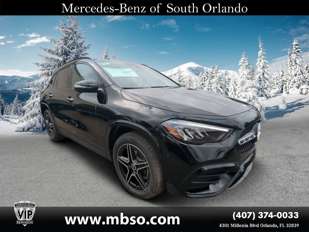 25/34 City/Highway MPG Recent Arrival! 2025 Mercedes-Benz GLA GLA 250 Night Black BLUETOOTH:Bluetooth is a registered mark of Bluetooth SIG, Inc, AMG® Night Package (AMG® Floor Mats, AMG® Line, Multifunction Sport Steering Wheel, Sport Brake System, and Sport Seats w/Separate Headrests), Night Package, 4-Wheel Disc Brakes, 6 Speakers, ABS brakes, Air Conditioning, Alloy wheels, AM/FM radio: SiriusXM, Apple CarPlay®/Android Auto®, Auto High-beam Headlights, Auto-dimming door mirrors, Auto-dimming Rear-View mirror, Automatic temperature control, Axle Ratio: TBD, Body Color Roof Spoiler, Brake assist, Bumpers: body-color, Child-Seat-Sensing Airbag, Chrome Door Handle Inserts, Delay-off headlights, Driver door bin, Driver vanity mirror, Dual front impact airbags, Dual front side impact airbags, Electronic Stability Control, Emergency communication system: eCall Emergency System and Active Emergency Stop Assist, Exterior Parking Camera Rear, First Aid Kit, Four wheel independent suspension, Front anti-roll bar, Front Bucket Seats, Front Center Armrest, Front dual zone A/C, Front fog lights, Front Power Comfort Seats, Front reading lights, Fully automatic headlights, Garage door transmitter, Heated door mirrors, Illuminated entry, Illuminated Star, Knee airbag, Leather steering wheel, LED Logo Projectors, Low tire pressure warning, MB-Tex Upholstery, Memory seat, Occupant sensing airbag, Outside temperature display, Overhead airbag, Overhead console, Panic alarm, Passenger door bin, Passenger vanity mirror, Power door mirrors, Power driver seat, Power Liftgate, Power passenger seat, Power steering, Power windows, Premium audio system: MBUX, Radio data system, Radio: Mercedes-Benz User Experience (MBUX), Rain sensing wipers, Rear anti-roll bar, Rear fog lights, Rear reading lights, Rear window defroster, Rear window wiper, Remote keyless entry, Security system, Speed control, Speed-sensing steering, Split folding rear seat, Spoiler, Steering wheel mounted audio controls, Tachometer, Telescoping steering wheel, Tilt steering wheel, Traction control, Trip computer, Turn signal indicator mirrors, Variably intermittent wipers, Wheel Locking Bolts, Wheels: 18" Twin 5-Spoke, and Wheels: 19" AMG® Twin 5-Spoke w/Black Accents.