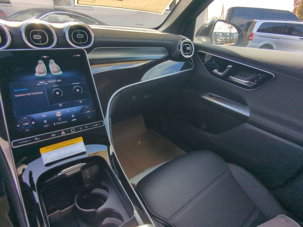 24/32 City/Highway MPG Recent Arrival! 2025 Mercedes-Benz GLC GLC 300 Black 4MATIC® BLUETOOTH:Bluetooth is a registered mark of Bluetooth SIG, Inc, 11.9" Center Touchscreen Display, 16-Way Power Front Seats w/Memory/Lumbar/Thigh Ext, 18" 10-Spoke Wheels, 18" 5-Twin Spoke Wheels, 3 USB C-Ports, 4-Wheel Disc Brakes, 8 Speakers, ABS brakes, Air Conditioning, Alloy wheels, AM/FM radio: SiriusXM, Apple CarPlay®/Android Auto®, Auto High-beam Headlights, Auto tilt-away steering wheel, Auto-dimming Rear-View mirror, Automatic temperature control, Black Fabric Headliner, Brake assist, Bumpers: body-color, Child-Seat-Sensing Airbag, Compass, Delay-off headlights, Driver door bin, Driver vanity mirror, Dual front impact airbags, Dual front side impact airbags, Electronic Stability Control, Emergency communication system: eCall Emergency System, Exterior Parking Camera Rear, Four wheel independent suspension, Front anti-roll bar, Front Bucket Seats, Front Center Armrest, Front dual zone A/C, Front reading lights, Fully automatic headlights, Garage door transmitter: HomeLink, Genuine wood dashboard insert, HD Radio, Head restraints memory, Heated door mirrors, Heated Front Bucket Seats, Heated front seats, Illuminated entry, Inductive Wireless Charging, Knee airbag, Leather steering wheel, Low tire pressure warning, MB-Tex Instrument Panel, MB-Tex Upholstery, Memory seat, Occupant sensing airbag, Outside temperature display, Overhead airbag, Overhead console, Panic alarm, Panorama Sunroof, Passenger door bin, Passenger vanity mirror, Piano Black Lacquer Center Console, Power adjustable front head restraints, Power door mirrors, Power driver seat, Power Liftgate, Power passenger seat, Power steering, Power windows, Premium audio system: MBUX, Radio data system, Radio: 3rd Generation MBUX, Rain sensing wipers, Rear anti-roll bar, Rear fog lights, Rear reading lights, Rear seat center armrest, Rear window defroster, Rear window wiper, Remote keyless entry, Security system, SiriusXM Satellite Radio, Speed control, Speed-sensing steering, Split folding rear seat, Spoiler, Steering wheel memory, Steering wheel mounted audio controls, Tachometer, Telescoping steering wheel, Tilt steering wheel, Traction control, Trip computer, Turn signal indicator mirrors, Variably intermittent wipers, Wireless Android Auto®, and Wireless Apple CarPlay®.