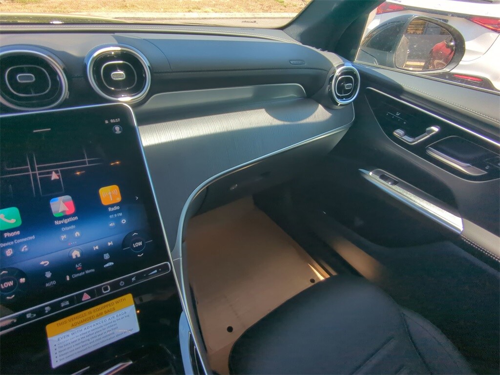 Recent Arrival! 2025 Mercedes-Benz GLC GLC 350e Obsidian Black Metallic 4MATIC® I4. BLUETOOTH:Bluetooth is a registered mark of Bluetooth SIG, Inc, AMG® Line (AMG® Line Body Styling, AMG® Line Exterior, AMG® Line Floor Mats, AMG® Line Interior, Flat-Bottom Multifunction Sport Steering Wheel, MB-Tex Instrument Panel, Perforated Brake Discs, and Wheel Arch Trim Painted in Body Color), Driver Assistance Package (Active Lane Change Assist, Active Speed Limit Assist, Automatic Lane Change, BAS PLUS w/Cross-Traffic Assist, DISTRONIC PLUS® w/Steering Assist, PRE-SAFE® Brake w/Pedestrian Recognition, PRE-SAFE® Impulse Side, and PRE-SAFE® PLUS), Driver Assistance Package, I4, 11.9" Center Touchscreen Display, 16-Way Power Front Seats w/Memory/Lumbar/Thigh Ext, 3 USB C-Ports, 4-Wheel Disc Brakes, 8 Speakers, ABS brakes, Air Conditioning, Alloy wheels, AM/FM radio: SiriusXM, Animated LED Logo Projector, Apple CarPlay®/Android Auto®, Auto High-beam Headlights, Auto tilt-away steering wheel, Auto-dimming Rear-View mirror, Auto-leveling suspension, Automatic temperature control, Brake assist, Bumpers: body-color, Child-Seat-Sensing Airbag, Compass, Delay-off headlights, Driver door bin, Driver vanity mirror, Dual front impact airbags, Dual front side impact airbags, Electronic Stability Control, Emergency communication system: eCall Emergency System, Exterior Parking Camera Rear, Four wheel independent suspension, Front anti-roll bar, Front Bucket Seats, Front Center Armrest, Front dual zone A/C, Front reading lights, Fully automatic headlights, Garage door transmitter: HomeLink, Genuine wood dashboard insert, HD Radio, Head restraints memory, Heated door mirrors, Heated Front Bucket Seats, Heated front seats, Heated Steering Wheel, Illuminated entry, Inductive Wireless Charging, Knee airbag, Leather steering wheel, Load Sill Guard, Low tire pressure warning, MB-Tex Upholstery, Memory seat, Navigation System, Occupant sensing airbag, Outside temperature display, Overhead airbag, Overhead console, Panic alarm, Passenger door bin, Passenger vanity mirror, Power adjustable front head restraints, Power door mirrors, Power driver seat, Power Liftgate, Power passenger seat, Power steering, Power windows, Premium audio system: MBUX, Radio data system, Radio: 3rd Generation MBUX, Rain sensing wipers, Rear anti-roll bar, Rear fog lights, Rear reading lights, Rear seat center armrest, Rear window defroster, Rear window wiper, Remote keyless entry, Security system, SiriusXM Satellite Radio, Speed control, Speed-sensing steering, Split folding rear seat, Spoiler, Steering wheel memory, Steering wheel mounted audio controls, Tachometer, Telescoping steering wheel, Tilt steering wheel, Traction control, Trip computer, Turn signal indicator mirrors, Variably intermittent wipers, Wheels: 19" AMG® 5-Spoke w/Black Accents, Wheels: 20" AMG® Multispoke w/Black Accents, Wireless Android Auto®, and Wireless Apple CarPlay®.