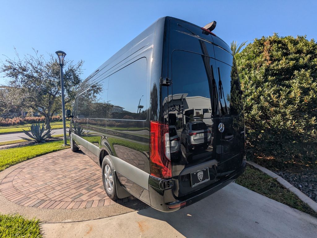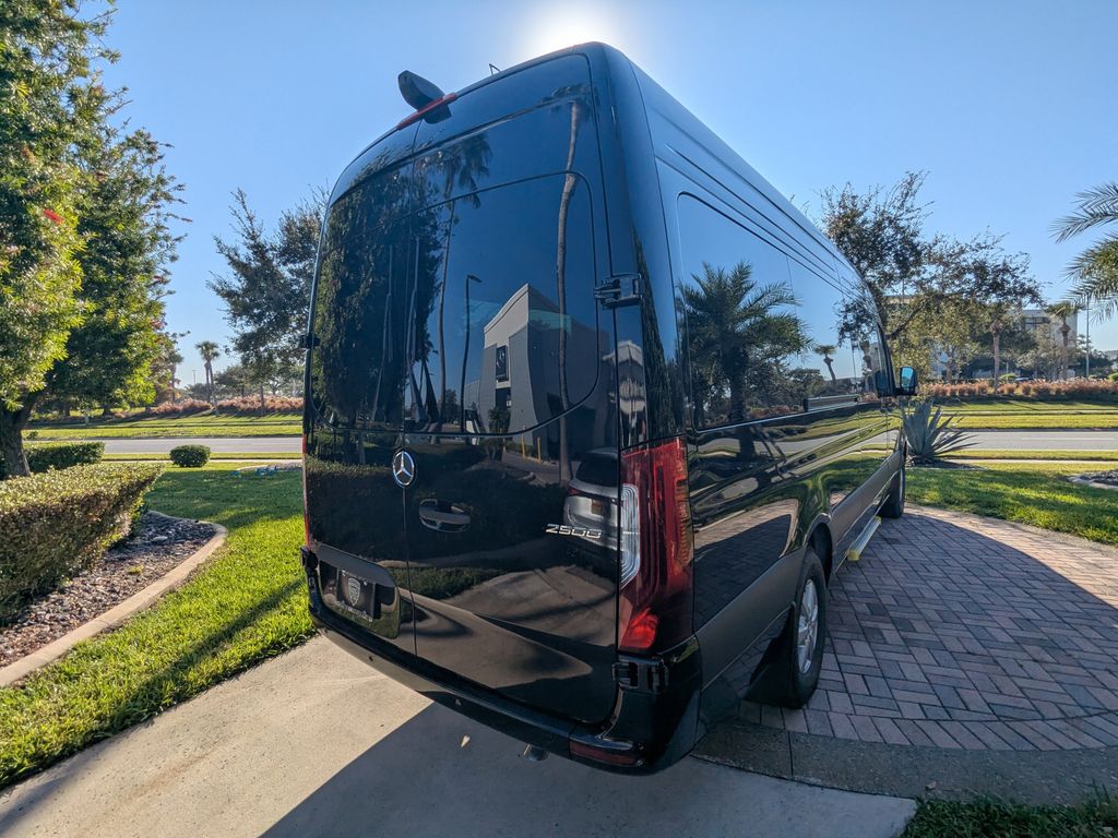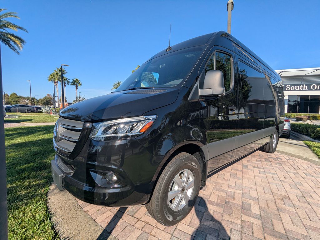 Recent Arrival! 2025 Mercedes-Benz Sprinter 2500 Passenger 170 WB Black High Roof Vehicle pricing not affected by Tariff. BLUETOOTH:Bluetooth is a registered mark of Bluetooth SIG, Inc, Smartphone Integration Package, 13 Speakers, 16" x 6.5J Steel Wheels, 3.923 Axle Ratio, 3rd row seats: bench, 4-Wheel Disc Brakes, 4th-Row Bench Seat, 5 Front & 8 Rear Audio System Speakers, 5th row bench seat, ABS brakes, Active Lane Keeping Assist, Air Conditioning, AM/FM radio, Armrest for Driver's Seat, Armrest for Front Passenger's Seat, Blind Spot Assist, Bodyside moldings, Brake assist, Comfort Driver's Seat, Comfort Overhead Control Panel, Driver Comfort Head Restraint, Driver door bin, Driver's Seat Lumbar Support, Driver's Seat Mounted Armrest, Dual front impact airbags, Dual front side impact airbags, Electronic Stability Control, Emergency communication system: eCall Emergency System, Exterior Parking Camera Rear, Front anti-roll bar, Front Bucket Seats, Front Compartment Heat Insulation, Front wheel independent suspension, Fully automatic headlights, Heated door mirrors, Heated Driver's Seat, Heated front seats, Illuminated entry, Leather Steering Wheel, Low tire pressure warning, Maturin Fabric Upholstery, Outside temperature display, Overhead airbag, Overhead console, Passenger door bin, Passenger seat mounted armrest, Power door mirrors, Power steering, Power windows, Pre-Installation for Navigation, Radio: MBUX Multimedia System w/10.25" Touchscreen, Rain sensing wipers, Rear air conditioning, Rear anti-roll bar, Rear reading lights, Rear window defroster, Remote keyless entry, Sideguard Assist, Speed control, Standard Front Passenger Seat, Steering wheel mounted audio controls, Tachometer, Tilt steering wheel, Traction control, and Variably intermittent wipers.
