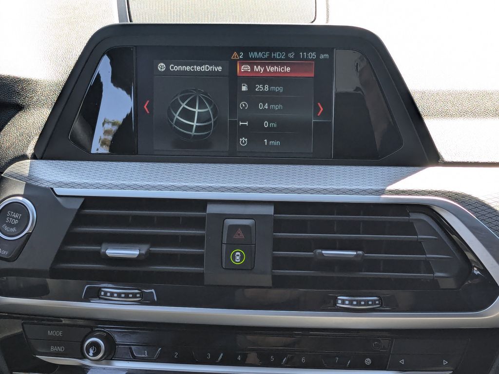 Alpine White WE DELIVER TO YOUR HOME OR OFFICE. 8-Speed Automatic. BLUETOOTH:Bluetooth is a registered mark of Bluetooth SIG, Inc, 8-Speed Automatic, 12 Speakers, 3.39 Axle Ratio, 4-Wheel Disc Brakes, ABS brakes, Active Blind Spot Detection, Active Driving Assistant, Aerodynamic Kit, Air Conditioning, Alloy wheels, Aluminum Rhombicle Interior Trim, AM/FM radio, Auto-dimming door mirrors, Auto-dimming Rear-View mirror, Automatic temperature control, Brake assist, Bumpers: body-color, Comfort Access Keyless Entry, Delay-off headlights, Driver door bin, Driver vanity mirror, Dual front impact airbags, Dual front side impact airbags, Electronic Stability Control, Emergency communication system: BMW Assist eCall, Exterior Parking Camera Rear, Four wheel independent suspension, Front anti-roll bar, Front Bucket Seats, Front Center Armrest, Front dual zone A/C, Front fog lights, Front reading lights, Fully automatic headlights, Garage door transmitter, Genuine wood dashboard insert, Genuine wood door panel insert, Hands-Free Bluetooth & USB Audio Connection, Heated door mirrors, Hi-Fi Sound System, Illuminated entry, Knee airbag, Lane Departure Warning System, LED Headlights w/Cornering Lights, Low tire pressure warning, Lumbar Support, Memory seat, Occupant sensing airbag, Outside temperature display, Overhead airbag, Panic alarm, Panoramic Moonroof, Passenger door bin, Passenger vanity mirror, Power door mirrors, Power driver seat, Power Front Seats, Power Liftgate, Power passenger seat, Power steering, Power windows, Radio data system, Radio: AM/FM Stereo w/HD, Rain sensing wipers, Rear air conditioning, Rear anti-roll bar, Rear reading lights, Rear seat center armrest, Rear window defroster, Rear window wiper, Remote keyless entry, Roof rack: rails only, Security system, SensaTec Upholstery, Shadowline Exterior Trim, SiriusXM Satellite Radio, Speed control, Speed-sensing steering, Speed-Sensitive Wipers, Split folding rear seat, Spoiler, Sport Bucket Seats, Sport Leather Steering Wheel, Sport steering wheel, Standard Suspension, Steering wheel mounted audio controls, Tachometer, Telescoping steering wheel, Tilt steering wheel, Traction control, Trip computer, Turn signal indicator mirrors, Variably intermittent wipers, Wheels: 18" x 7.0" Y-Spoke (Style 688), and Wheels: 19" x 7.5" M Double-Spoke (Style 698M) 23/30 City/Highway MPG