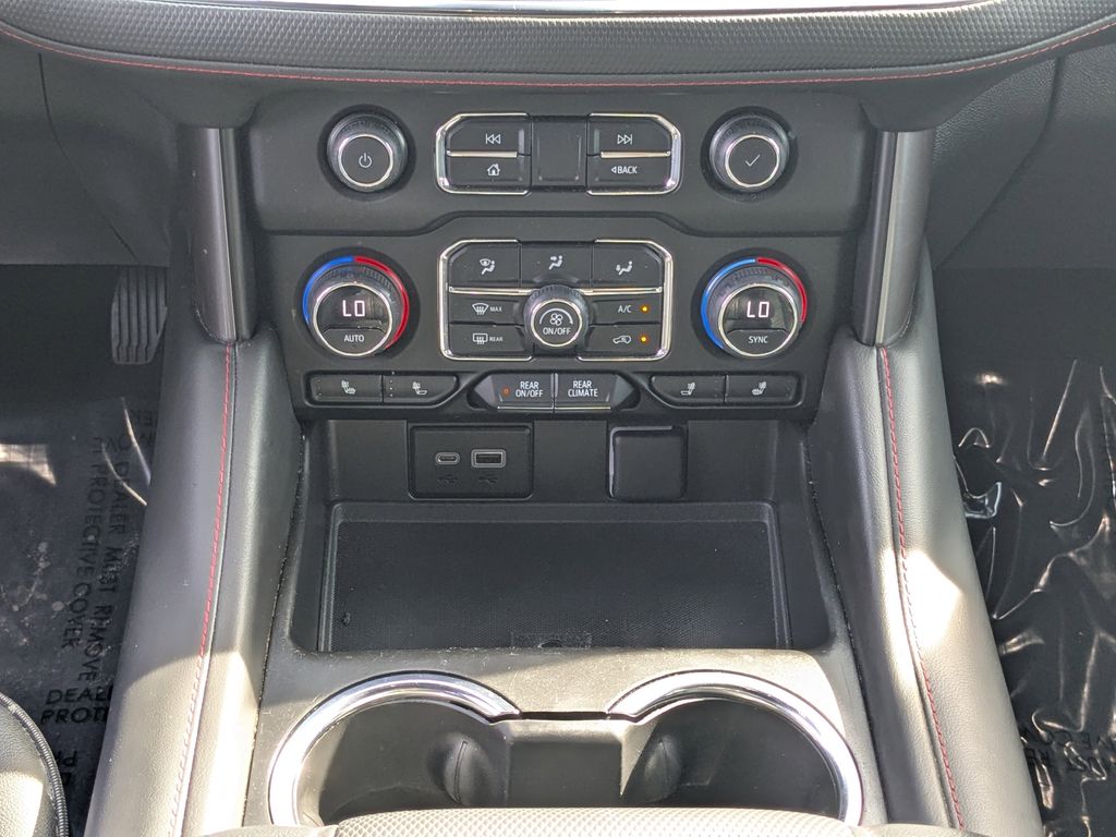 Sterling Gray Metallic WE DELIVER TO YOUR HOME OR OFFICE. Jet Black/Victory Red Leather. BLUETOOTH:Bluetooth is a registered mark of Bluetooth SIG, Inc, Preferred Equipment Group 1SP (1st & 2nd Row Color-Keyed Carpeted Floor Mats, Auto-Dimming Inside Rear-View Mirror, Bose 9-Speaker Stereo Audio System Feature, Bright Front & Rear Door Sill Plates, Color-Keyed Carpeting Floor Covering, Driver & Front Outboard Passenger Airbags, Enhanced Driver Information Center, Floor Console w/Storage Area, Hands-Free Rear Power Programmable Liftgate, Infotainment Display, LED Daytime Running Lamps, Memory Settings for Driver, Remote Start, SiriusXM Radio w/360L, Universal Home Remote, Wireless Charging, and Wrapped Steering Wheel), Jet Black/Victory Red Leather, 10-Way Power Driver & Passenger Seat Adjusters, 3.23 Rear Axle Ratio, 3rd row seats: split-bench, 4-Wheel Disc Brakes, 9 Speakers, ABS brakes, Air Conditioning, Alloy wheels, AM/FM radio: SiriusXM with 360L, Apple CarPlay/Android Auto, Auto High-beam Headlights, Auto-dimming Rear-View mirror, Automatic temperature control, Brake assist, Bumpers: body-color, Compass, Delay-off headlights, Driver door bin, Driver vanity mirror, Dual front impact airbags, Dual front side impact airbags, Dual-Pane Power Panoramic Sunroof, Electronic Stability Control, Emergency communication system: OnStar and Chevrolet connected services capable, Four wheel independent suspension, Front anti-roll bar, Front Bucket Seats, Front Center Armrest, Front dual zone A/C, Front High-Back Reclining Bucket Seats, Front reading lights, Fully automatic headlights, Garage door transmitter, Heated door mirrors, Heated Driver & Front Passenger Seats, Heated front seats, Illuminated entry, Low tire pressure warning, Memory seat, Navigation System, Occupant sensing airbag, Outside temperature display, Overhead airbag, Overhead console, Panic alarm, Passenger door bin, Passenger vanity mirror, Perforated Leather Seat Trim, Power door mirrors, Power driver seat, Power Liftgate, Power passenger seat, Power steering, Power windows, Premium audio system: Chevrolet Infotainment 3 Premium, Premium Smooth Ride Suspension, Radio: Chevrolet Infotainment 3 Premium System, Rain sensing wipers, Rear air conditioning, Rear anti-roll bar, Rear reading lights, Rear seat center armrest, Rear window defroster, Rear window wiper, Remote keyless entry, Roof rack: rails only, Security system, Set of 4 Wheel Locks (LPO), Speed control, Speed-sensing steering, Split folding rear seat, Spoiler, Steering wheel mounted audio controls, Tachometer, Telescoping steering wheel, Tilt steering wheel, Traction control, Trip computer, Variably intermittent wipers, Voltmeter, and Wheels: 22" x 9" Bright Machined.