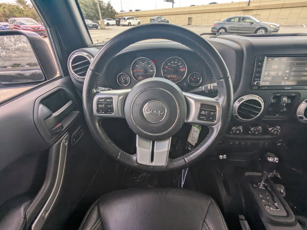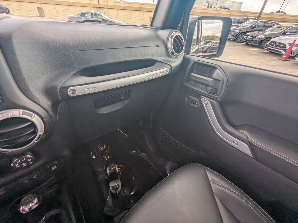 Black Clearcoat WE DELIVER TO YOUR HOME OR OFFICE. BLUETOOTH:Bluetooth is a registered mark of Bluetooth SIG, Inc, Connectivity Group (Leather Wrapped Steering Wheel, Remote USB Port, Tire Pressure Monitoring Display, Uconnect Voice Command w/Bluetooth, and Vehicle Information Center), Max Tow Package (Class II Receiver Hitch and Trailer Tow w/4-Pin Connector Wiring), Quick Order Package 24J Rubicon Hard Rock (Accent Stitching, Alpine 9-Speaker w/All Weather Subwoofer, Black/Chrome Screws Fuel Filler Door, Chrome/Leather Wrapped Shift Knob, Driver Height Adjuster Seat, Front Seat Back Map Pockets, Heated Front Seats, Hood w/Power Dome, Jeep Trail Rated Kit, Leather Trimmed Bucket Seats, Low Gloss Black Wrangler Decal, MOPAR Slush Mats, Premium Black Sunrider Soft Top, Premium EVIC Message Center, Red Front & Rear Tow Hooks, Red Trail Rated Badge, Rubicon Hood Decal, Silver Interior Accents, Steel Front Bumper, Steel Rear Bumper, and Wheels: 17" x 7.5" Polished Semi-Gloss Black), Rubicon Hard Rock Package, 17" x 7.5" Polished Mineral Gray Wheels, 4-Wheel Disc Brakes, 4.10 Rear Axle Ratio, 40GB Hard Drive w/28GB Available, 5-Year SiriusXM Travel Link Service, 6.5" Touchscreen Display, 8 Speakers, ABS brakes, Add 4.10 Axle Ratio, Air Conditioning, Air Conditioning w/Auto Temperature Control, Air Filtering, Alloy wheels, AM/FM radio: SiriusXM, Audio Jack Input for Mobile Devices, Auto-dimming Rear-View mirror, Body Color Fender Flares, Brake assist, CD player, Cloth Seats w/Adjustable Head Restraints, Compass, Driver door bin, Driver vanity mirror, Dual front impact airbags, Electronic Stability Control, Freedom Panel Storage Bag, Front anti-roll bar, Front Bucket Seats, Front Center Armrest w/Storage, Front fog lights, Front reading lights, Fully automatic headlights, GPS Navigation, Heated door mirrors, Humidity Sensor, Illuminated entry, Integrated roll-over protection, Leather steering wheel, Low tire pressure warning, Occupant sensing airbag, Outside temperature display, Panic alarm, Passenger door bin, Passenger vanity mirror, Performance Suspension, Power door mirrors, Power steering, Power windows, Radio data system, Radio: 130, Radio: 430N, Rear anti-roll bar, Rear Window Defroster, Rear Window Wiper/Washer, Remote keyless entry, Remote Start System, Security system, SiriusXM Travel Link, Speed control, Split folding rear seat, Steering wheel mounted audio controls, Supplemental Front Seat Side Airbags, Tachometer, Tilt steering wheel, Traction control, Trip computer, and Variably intermittent wipers.