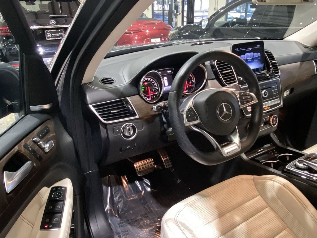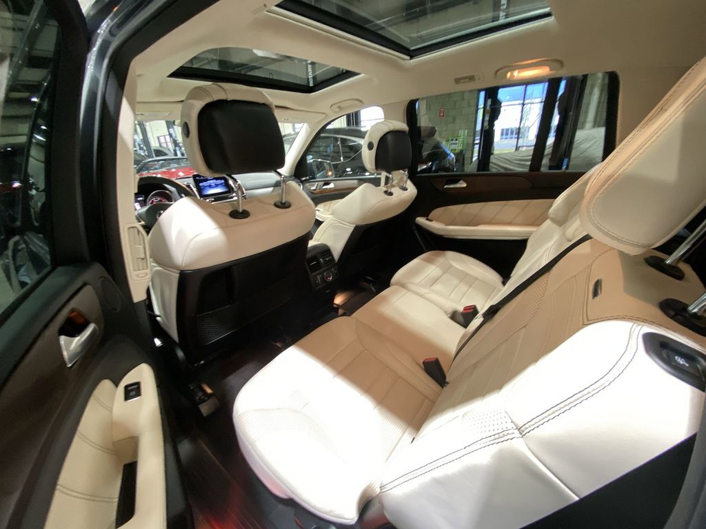 WE DELIVER TO YOUR HOME OR OFFICE. BLUETOOTH:Bluetooth is a registered mark of Bluetooth SIG, Inc, 14 Speakers, 3.47 Axle Ratio, 3rd row seats: split-bench, 4-Wheel Disc Brakes, ABS brakes, Adaptive suspension, Air Conditioning, Alloy wheels, Aluminum Trim, AM/FM radio: SiriusXM, Android Auto®, Anti-whiplash front head restraints, Apple CarPlay®, Apple CarPlay®/Android Auto®, Auto High-beam Headlights, Auto tilt-away steering wheel, Auto-dimming door mirrors, Auto-dimming Rear-View mirror, Auto-leveling suspension, Automatic temperature control, Bodyside moldings, Brake assist, Bumpers: body-color, CD player, Child-Seat-Sensing Airbag, Compass, Delay-off headlights, Door auto-latch, Driver door bin, Driver vanity mirror, Dual front impact airbags, Dual front side impact airbags, DVD Drive, DVD-Audio, Electronic Stability Control, Emergency communication system: Mercedes me connect, Exclusive Nappa Leather Upholstery, Four wheel independent suspension, Front anti-roll bar, Front Bucket Seats, Front Center Armrest w/Storage, Front dual zone A/C, Front reading lights, Fully automatic headlights, Garage door transmitter: Homelink, harman/kardon® Logic 7® Surround Sound System, harman/kardon® Speakers, Heated and Ventilated Front Seats, Heated door mirrors, Heated front seats, Heated rear seats, Illuminated entry, Illuminated running boards, Knee airbag, Low tire pressure warning, Memory seat, Multi-Contour Front Seats w/Massage Feature, Navigation Map Updates Included for 3-years, Navigation system: COMAND®, Occupant sensing airbag, Outside temperature display, Overhead airbag, Panic alarm, Passenger door bin, Passenger vanity mirror, Power adjustable front head restraints, Power door mirrors, Power driver seat, Power Front Seats w/Driver Memory, Power Liftgate, Power moonroof, Power passenger seat, Power steering, Power windows, Premium audio system: COMAND®, Radio: COMAND® System w/Navigation, Rain sensing wipers, Rear air conditioning, Rear anti-roll bar, Rear fog lights, Rear reading lights, Rear seat center armrest, Rear window defroster, Rear window wiper, Remote keyless entry, Roof rack: rails only, Security system, SiriusXM Radio, Speed control, Speed-sensing steering, Speed-Sensitive Wipers, Split folding rear seat, Spoiler, Sport steering wheel, Steering wheel memory, Steering wheel mounted audio controls, Tachometer, Telescoping steering wheel, Tilt steering wheel, Traction control, Trip computer, Turn signal indicator mirrors, Variably intermittent wipers, Ventilated front seats, Weather band radio, and Wheels: 21" AMG® Twin Cross-Spoke.