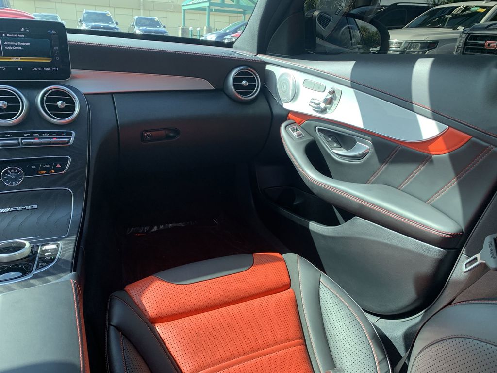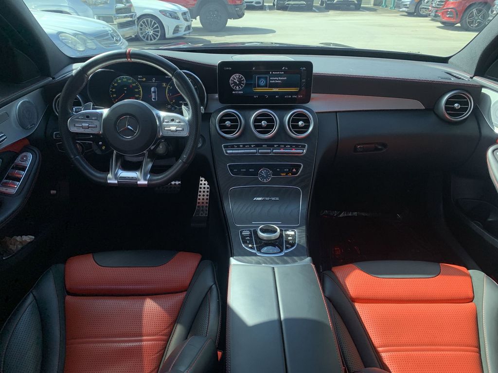 Black WE DELIVER TO YOUR HOME OR OFFICE. BLUETOOTH:Bluetooth is a registered mark of Bluetooth SIG, Inc, 13 Speakers, 19" AMG® Twin 5-Spoke Wheels, 4-Way Lumbar Support, 4-Wheel Disc Brakes, ABS brakes, Adaptive suspension, Air Conditioning, Alloy wheels, AM/FM radio: SiriusXM, Android Auto®, Apple CarPlay®, Apple CarPlay®/Android Auto®, Auto tilt-away steering wheel, Auto-dimming door mirrors, Auto-dimming Rear-View mirror, Automatic temperature control, Brake assist, Bumpers: body-color, Burmester® Surround Sound System, Compass, Delay-off headlights, Driver door bin, Driver vanity mirror, Dual front impact airbags, Dual front side impact airbags, Electronic Stability Control, Emergency communication system: Mercedes me connect, Exterior Parking Camera Rear, Four wheel independent suspension, Front anti-roll bar, Front Bucket Seats, Front Center Armrest, Front dual zone A/C, Front reading lights, Fully automatic headlights, Garage door transmitter: HomeLink, Genuine wood console insert, Genuine wood dashboard insert, Genuine wood door panel insert, HD Radio, Head restraints memory, Heated door mirrors, Heated front seats, Illuminated entry, Knee airbag, Low tire pressure warning, Memory seat, Occupant sensing airbag, Outside temperature display, Overhead airbag, Overhead console, Panic alarm, Passenger door bin, Passenger vanity mirror, Perforated Nappa Leather Upholstery, Performance Tires, Power adjustable front head restraints, Power door mirrors, Power driver seat, Power Driver Seat & Steering Column w/Memory, Power Heated Front Seats w/Memory, Power moonroof: Panorama, Power passenger seat, Power Passenger Seat w/Memory, Power steering, Power windows, Radio data system, Radio: Audio 20, Rain sensing wipers, Rear anti-roll bar, Rear fog lights, Rear reading lights, Rear seat center armrest, Rear side impact airbag, Rear window defroster, Remote keyless entry, Security system, SiriusXM Satellite Radio, Smartphone Integration, Speed control, Speed-sensing steering, Split folding rear seat, Spoiler, Sport steering wheel, Steering wheel memory, Steering wheel mounted audio controls, Tachometer, Telescoping steering wheel, Tilt steering wheel, Traction control, Trip computer, Turn signal indicator mirrors, Variably intermittent wipers, and Weather band radio. 17/26 City/Highway MPG