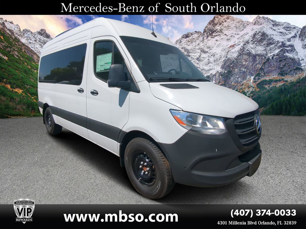 2024 Mercedes-Benz Sprinter 2500 Passenger 144 WB Arctic White Vehicle pricing not affected by Tariff. BLUETOOTH:Bluetooth is a registered mark of Bluetooth SIG, Inc, Acoustic Package, Parking Package w/360 Degree Camera, 13 Speakers, 3.923 Axle Ratio, 3rd row seats: bench, 4-Wheel Disc Brakes, 4th-Row Bench Seat, 5 Front & 8 Rear Speakers, 6.5J x 16" Steel Wheels, ABS brakes, Air Conditioning, AM/FM radio, Armrest For Driver's Seat, Armrest For Front Passenger's Seat, Blind Spot Assist, Bodyside moldings, Brake assist, Bucket Seats, Driver door bin, Driver's Seat, Driver's Seat Mounted Armrest, Dual front impact airbags, Dual front side impact airbags, Electronic Stability Control, Emergency communication system: eCall Emergency System, Exterior Parking Camera Rear, Front anti-roll bar, Front Bucket Seats, Front wheel independent suspension, Fully automatic headlights, Heated door mirrors, Heated Driver's Seat, Heated front seats, Heated Rear Windows w/Washers & Wipers, High Roof, Illuminated entry, Interior Rear View Mirror, Leatherette Upholstery, Low tire pressure warning, Maturin Fabric Upholstery, Outside temperature display, Overhead airbag, Overhead console, Passenger door bin, Passenger seat mounted armrest, Power door mirrors, Power steering, Power windows, Radio: Standard, Rain Sensor, Rear air conditioning, Rear anti-roll bar, Rear reading lights, Rear window defroster, Remote keyless entry, Rims Painted Jet Black, Speed control, Standard Front Passenger Seat, Steering wheel mounted audio controls, Tachometer, Tilt steering wheel, and Traction control.