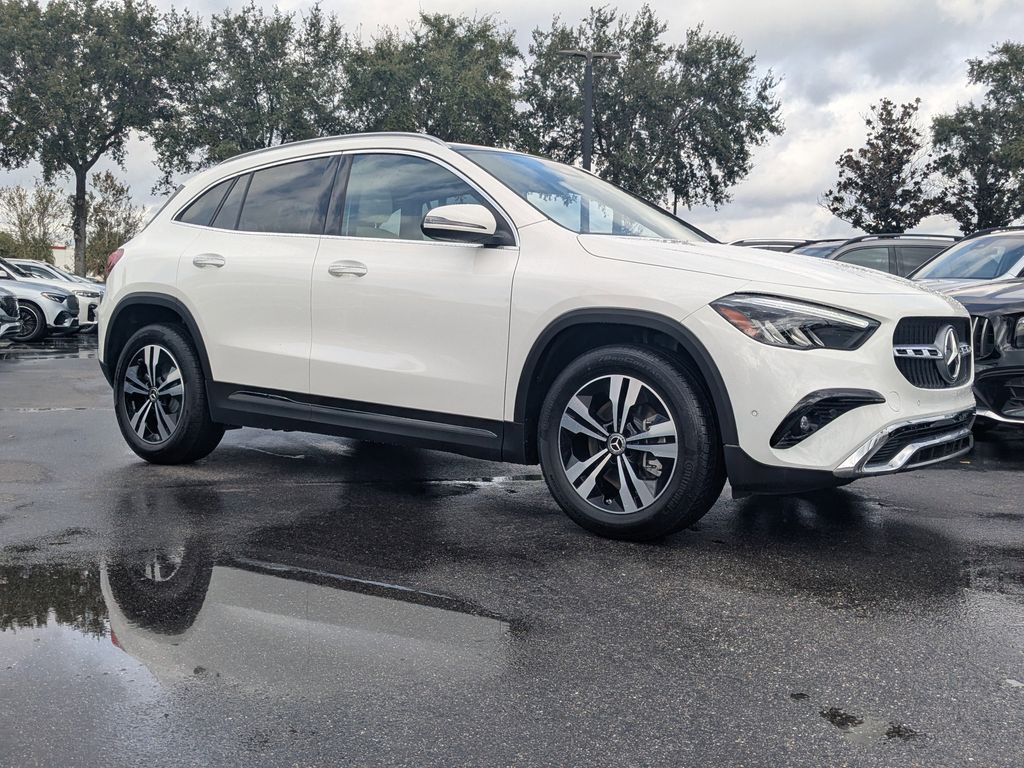 26/34 City/Highway MPG Recent Arrival! 2025 Mercedes-Benz GLA GLA 250 Polar White BLUETOOTH:Bluetooth is a registered mark of Bluetooth SIG, Inc, 4-Wheel Disc Brakes, 6 Speakers, ABS brakes, Air Conditioning, Alloy wheels, AM/FM radio: SiriusXM, Apple CarPlay®/Android Auto®, Auto High-beam Headlights, Auto-dimming door mirrors, Auto-dimming Rear-View mirror, Automatic temperature control, Axle Ratio: TBD, Brake assist, Bumpers: body-color, Child-Seat-Sensing Airbag, Delay-off headlights, Driver door bin, Driver vanity mirror, Dual front impact airbags, Dual front side impact airbags, Electronic Stability Control, Emergency communication system: eCall Emergency System and Active Emergency Stop Assist, Exterior Parking Camera Rear, Four wheel independent suspension, Front anti-roll bar, Front Bucket Seats, Front Center Armrest, Front dual zone A/C, Front fog lights, Front Power Comfort Seats, Front reading lights, Fully automatic headlights, Garage door transmitter, Heated door mirrors, Illuminated entry, Knee airbag, Leather steering wheel, Low tire pressure warning, MB-Tex Upholstery, Memory seat, Occupant sensing airbag, Outside temperature display, Overhead airbag, Overhead console, Panic alarm, Panoramic Sliding Sunroof, Passenger door bin, Passenger vanity mirror, Power door mirrors, Power driver seat, Power Liftgate, Power passenger seat, Power steering, Power windows, Premium audio system: MBUX, Radio data system, Radio: Mercedes-Benz User Experience (MBUX), Rain sensing wipers, Rear anti-roll bar, Rear fog lights, Rear reading lights, Rear window defroster, Rear window wiper, Remote keyless entry, Security system, Speed control, Speed-sensing steering, Split folding rear seat, Spoiler, Steering wheel mounted audio controls, Tachometer, Telescoping steering wheel, Tilt steering wheel, Traction control, Trip computer, Turn signal indicator mirrors, Variably intermittent wipers, and Wheels: 18" Twin 5-Spoke.