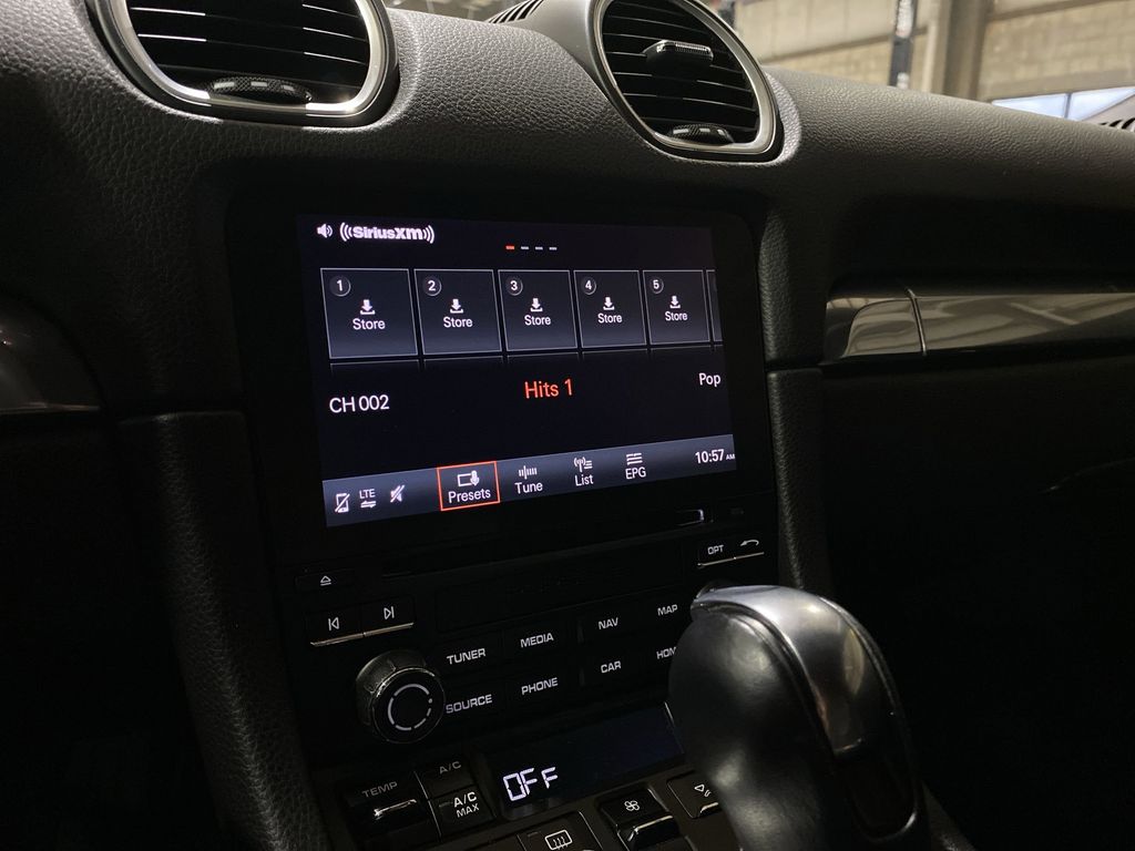 WE DELIVER TO YOUR HOME OR OFFICE. BLUETOOTH:Bluetooth is a registered mark of Bluetooth SIG, Inc, 2-Way Sport Seats, 4-Wheel Disc Brakes, 6 Speakers, ABS brakes, Air Conditioning, Alloy wheels, AM/FM radio: SiriusXM, Brake assist, Bumpers: body-color, CD player, Convertible roof lining, Convertible roof wind blocker, Delay-off headlights, Driver door bin, Driver vanity mirror, Dual front impact airbags, Dual front side impact airbags, DVD-Audio, Electronic Stability Control, Exterior Parking Camera Rear, Four wheel independent suspension, Front anti-roll bar, Front Bucket Seats, Front Center Armrest, Front reading lights, Fully automatic headlights, Garage door transmitter: HomeLink, Glass rear window, Headlight cleaning, Heated door mirrors, High intensity discharge headlights: Bi-Xenon, Illuminated entry, Integrated roll-over protection, Knee airbag, Leather Shift Knob, Low tire pressure warning, Occupant sensing airbag, Outside temperature display, Overhead airbag, Partial Leather Seat Trim, Passenger door bin, Passenger vanity mirror, Porsche Communication Management, Power convertible roof, Power door mirrors, Power driver seat, Power passenger seat, Power steering, Power windows, Radio data system, Rear anti-roll bar, Rear window defroster, Remote keyless entry, Security system, Speed control, Spoiler, Sport steering wheel, Tachometer, Telescoping steering wheel, Tilt steering wheel, Traction control, Trip computer, Variably intermittent wipers, and Wheels: 18" Boxster Design. 21/28 City/Highway MPG