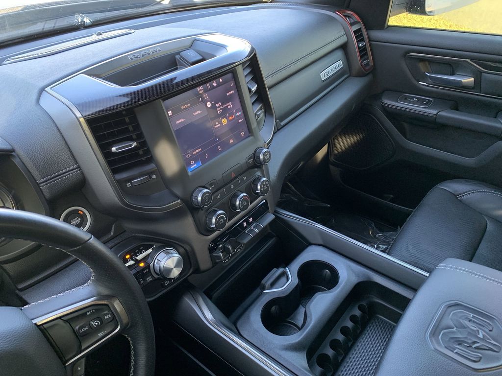 Diamond Black Crystal Pearlcoat WE DELIVER TO YOUR HOME OR OFFICE. BLUETOOTH:Bluetooth is a registered mark of Bluetooth SIG, Inc, Bed Utility Group (MOPAR 4 Adjustable Cargo Tie-Down Hooks and Pick-Up Box Lighting), Night Edition (Black Front Bumper w/Black Plate, Grille Surround 2 Black Texture 3 Black, RAM Grille Badge - Black, and Wheels: 18" x 8.0" Gloss Black), Quick Order Package 25W Rebel, Rebel Level 1 Equipment Group (2nd Row In Floor Storage Bins, 4G LTE Wi-Fi Hot Spot, 8.4" Touchscreen Display, Apple CarPlay, Auto-Dimming Exterior Driver Mirror, Black Exterior Mirrors, Black Premium Power Mirrors, Bluetooth Handsfree Phone & Audio, Connectivity - US/Canada, Convex Wide-Angle Mirror Insert, Exterior Mirrors Courtesy Lamps, Exterior Mirrors w/Heating Element, Exterior Mirrors w/Supplemental Signals, Foam Bottle Insert (Door Trim Panel), For Details, Visit DriveUconnect.com, Global Telematics Box Module (TBM), Google Android Auto, GPS Antenna Input, Heated Front Seats, Heated Steering Wheel, Integrated Center Stack Radio, Power Adjustable Pedals, Power-Folding Mirrors, Radio: Uconnect 5 W w/8.4" Display, Rear Dome w/On/Off Switch Lamp, Rear Window Defroster, SiriusXM Radio Service, SiriusXM Satellite Radio, Sun Visors w/Illuminated Vanity Mirrors, Universal Garage Door Opener, and USB Host Flip), 3.92 Rear Axle Ratio, 33 Gallon Fuel Tank, 4 Way Front Headrests, 4-Wheel Disc Brakes, 48V Belt Starter Generator, 6 Speakers, ABS brakes, Air Conditioning, Alloy wheels, AM/FM radio: SiriusXM, Auto-dimming Rear-View mirror, Brake assist, Bucket Seats, Cloth/Vinyl Low Back Bucket Seats, Compass, Delay-off headlights, Driver door bin, Dual front impact airbags, Dual front side impact airbags, Electronic Stability Control, Emergency communication system: SiriusXM Guardian, Front anti-roll bar, Front Bucket Seats, Front Center Armrest w/Storage, Front fog lights, Front reading lights, Front Seat Back Map Pockets, Front wheel independent suspension, Full Length Upgraded Floor Console, Fully automatic headlights, Heated door mirrors, Illuminated entry, Integrated Voice Command w/Bluetooth, Leather steering wheel, Low tire pressure warning, Occupant sensing airbag, Outside temperature display, Overhead airbag, Overhead console, Panic alarm, ParkView Rear Back-Up Camera, Passenger door bin, Passenger vanity mirror, Power 2-Way Driver Lumbar Adjust, Power door mirrors, Power driver seat, Power steering, Power windows, Radio data system, Radio: Uconnect 3 w/5" Display, Rear 60/40 Folding Seat, Rear anti-roll bar, Rear seat center armrest, Rear step bumper, Rear Wheelhouse Liners, Remote keyless entry, Speed control, Split folding rear seat, Steering wheel mounted audio controls, Tachometer, Telescoping steering wheel, Tilt steering wheel, Traction control, Trailer Brake Control, Trip computer, Twill Film Appliques, Variably intermittent wipers, Voltmeter, and Wheels: 18" x 8.0" Painted Mid-Gloss BlacK.